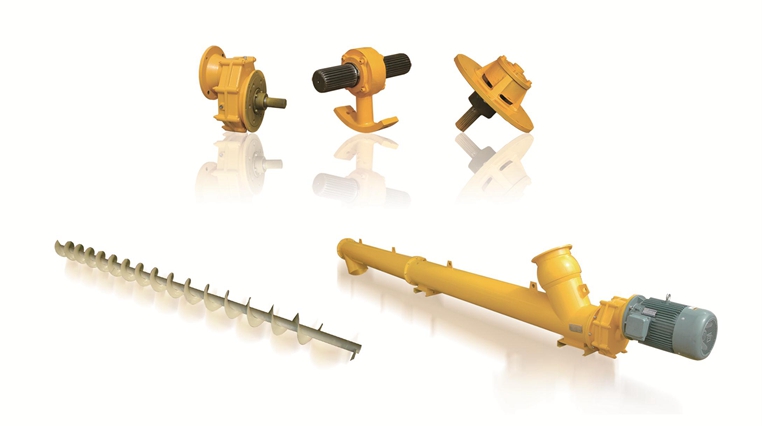 螺旋輸送機由螺旋機本體、進出料口及驅動裝置三部分組成。螺旋機本體由頭部軸承、尾部軸承、懸掛軸承、螺旋、機殼、蓋板及底座等組成。螺旋輸送機內螺旋葉片的面型有三種——帶式螺旋面型、葉片螺旋面型、實體螺旋面型,螺旋葉片有左旋與右旋兩種旋向。螺旋輸送機旋轉軸上焊有螺旋葉片,螺旋軸在物料運動方向的終端有止推軸承以隨物料給螺旋的軸向反力,在機長較長時,應加中間吊掛軸承。螺旋輸送機的類型有水平固定式螺旋輸送機、垂直式螺旋輸送機。水平固定式螺旋輸送機是最常用的一種型式。垂直式螺旋輸送機用于短距離提升物料,輸送高度一般不大于8m,螺旋葉片為實體面型,它必須有水平螺旋喂料,以保證必要的進料壓力。